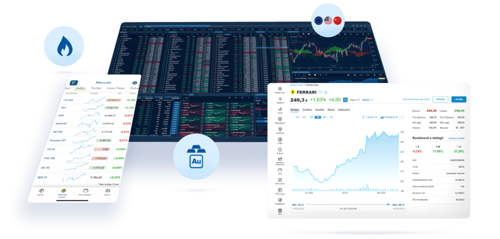 Futures : derivative financial instruments whose value is directly linked to that of the underlying asset and therefore follows its trend. Derivative financial instruments are characterized by the leverage effect: this means that a relatively small movement in the market prices of the underlying will have a proportionally higher impact on the margin which, in the event of an unfavorable movement with respect to the sign of the customer’s position (increase in the price of the underlying for short positions, decrease for long positions) may be almost entirely lost. Setting automatic orders does not guarantee their execution at the pre-established price, as reaching this price is a condition for entering the order and not for its execution. Between entering the order and its execution, the price may vary, especially in the presence of particular conditions such as, for example, in the case of thin securities or with high volatility. Before operating in derivative financial instruments, read the KIDs available on this site.